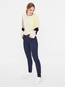 Slim fit jeans with a mid-waist, belt loops, and a 5-pocket fit. The jeans are perfect with a t-shirt in the summer and a knitted pullover when it gets colder outside.
