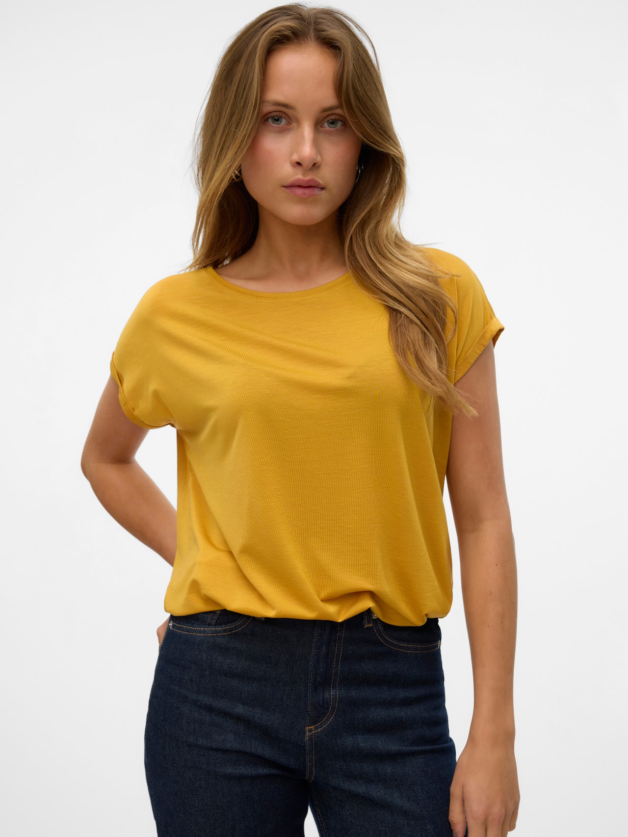 Jos olet epävarma, käytä T-paitaa! Et voi koskaan mennä pieleen T-paidan kanssa - täydellinen valinta viileään ja ajattomaan ilmeeseen. Käytä tätä T-paitaa mukavien poikaystäväfarkkujen kanssa ja lisää pari paksuja lenkkareita urbaaniin kaupunki-ilmeeseen.