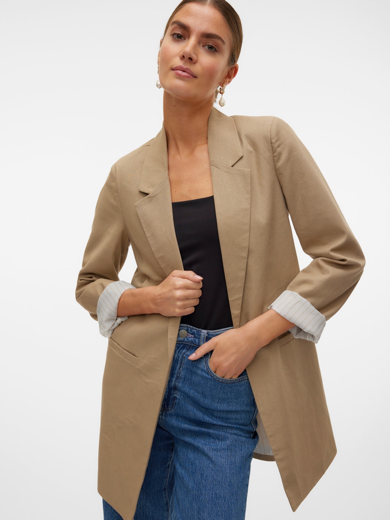 Etkö tiedä mitä pukisit päällesi? Heitä yllesi bleiseri. Tämä bleiseri on tyylikäs luottotuotteesi. Piditpä bleiseriä sitten topin tai yksinkertaisen t-paidan päällä, se lisää asuun aina hienostuneisuutta ja tyylikkyyttä. Yhdistä leveälahkeisten farkkujen ja korkojen kanssa, niin saat hienostuneemman arkiasun.