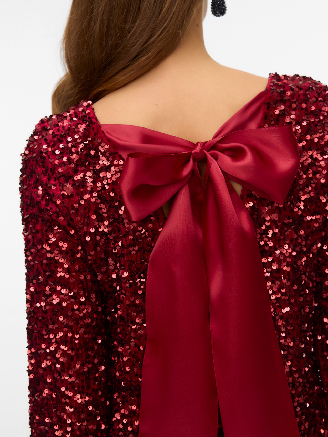 - Lisä yksityiskohdat : Koristerusetti, Avonainen selkä, Paljettikoristelu