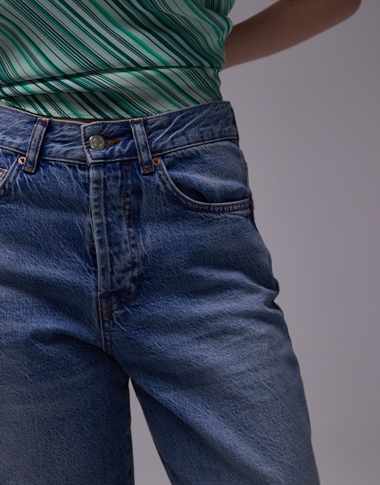 Topshop Petite mid rise loose fit straight jeans in mid blue - MBLUE