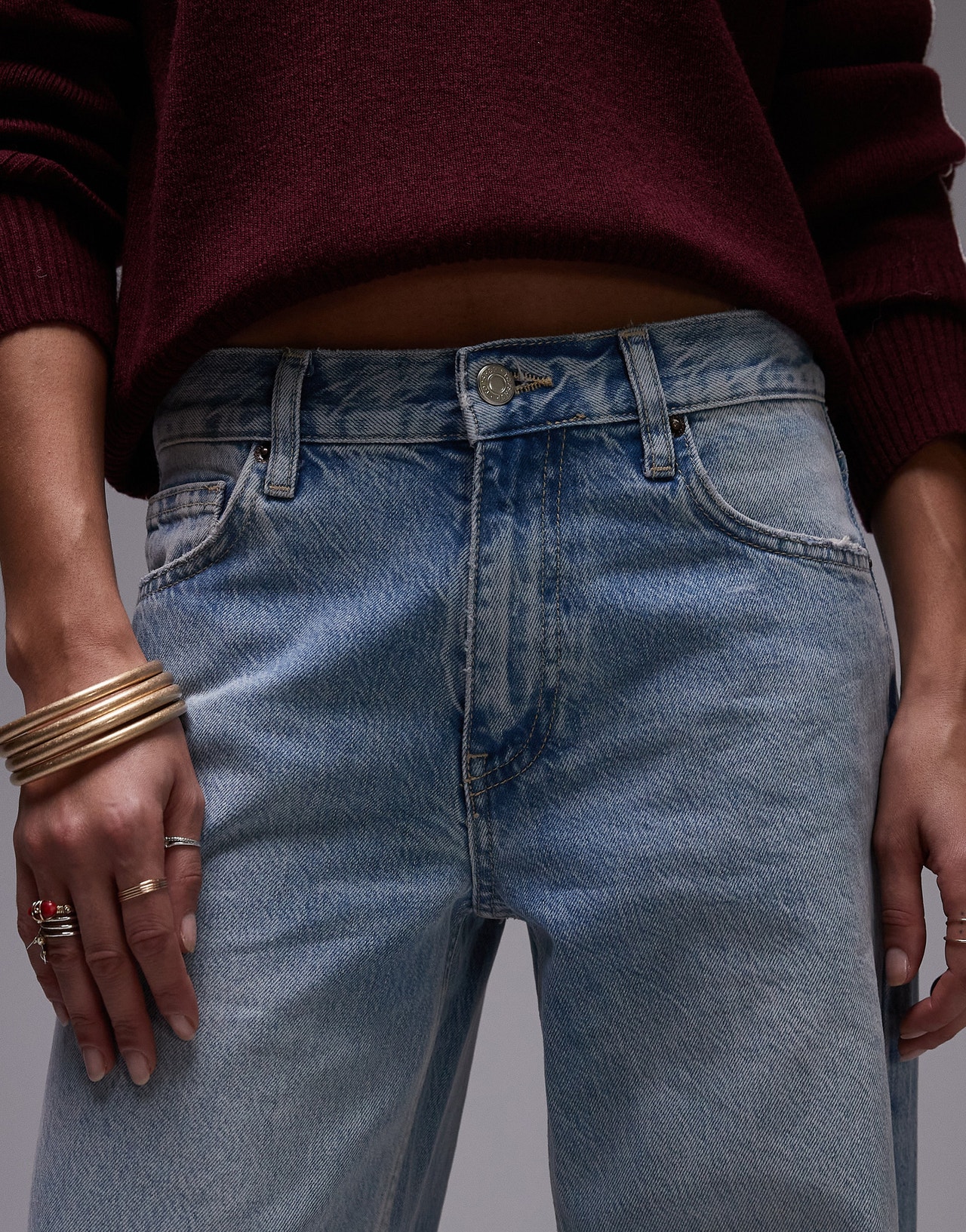 Topshop Horizon wide leg mid rise jean in bleach - LBLUE