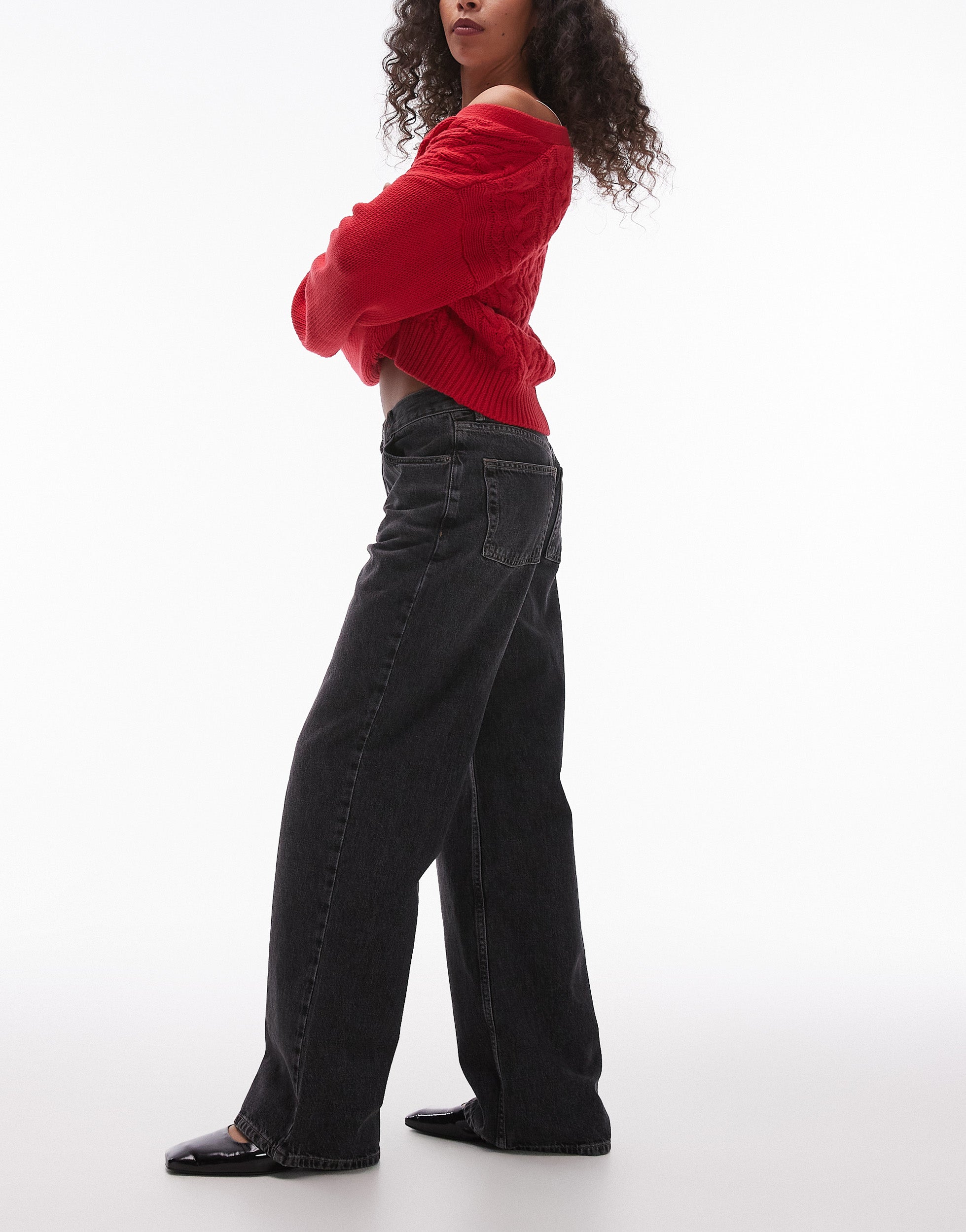 Topshop Ember low rise wide leg jean in washed black - BLACK