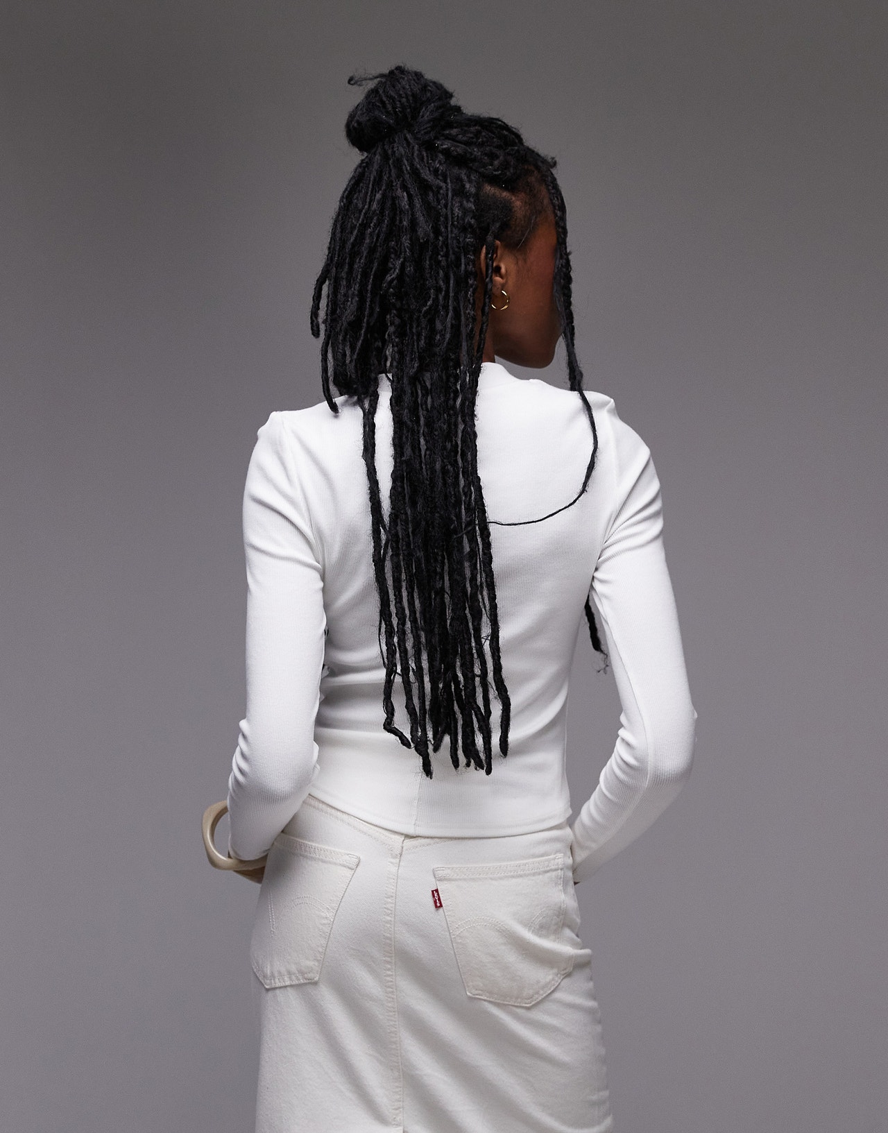 Topshop rib curve hem long sleeve tee in white - WHITE