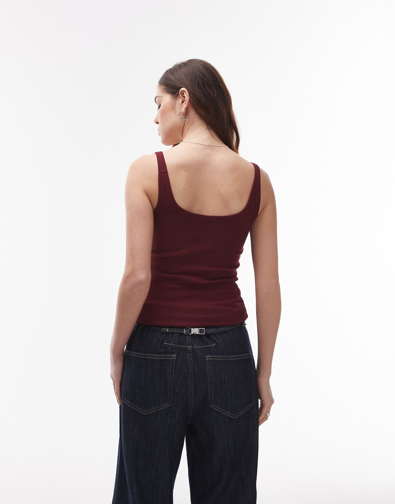 Topshop skinny strap scoop rib vest in burgundy - BURGUNDY