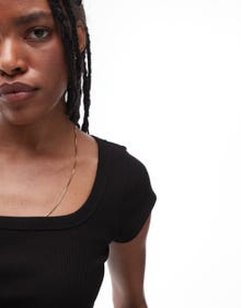 Topshop square neck rib cap sleeve tee in black - BLACK