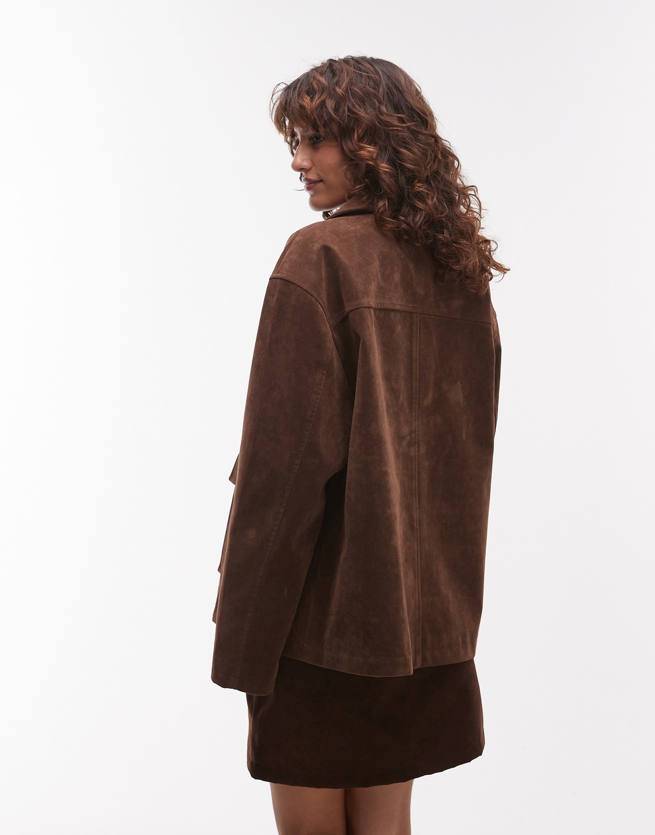 Topshop faux suede patch pocket boxy jacket in brown - BROWN