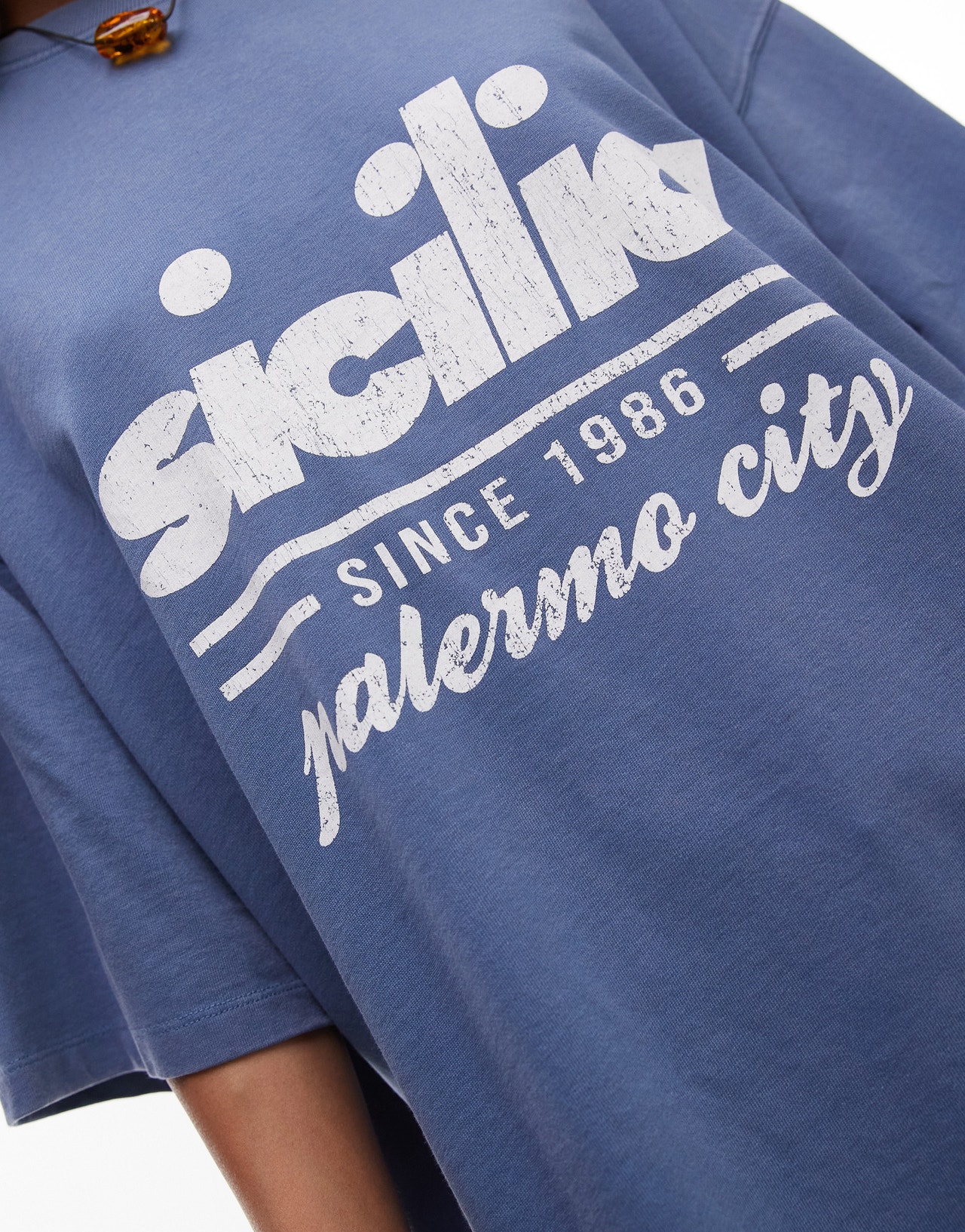 Topshop graphic Sicilia oversized tee in blue - MBLUE