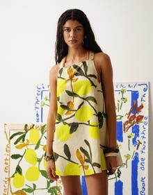 Topshop tie back A line mini dress in lemon print - MULTI