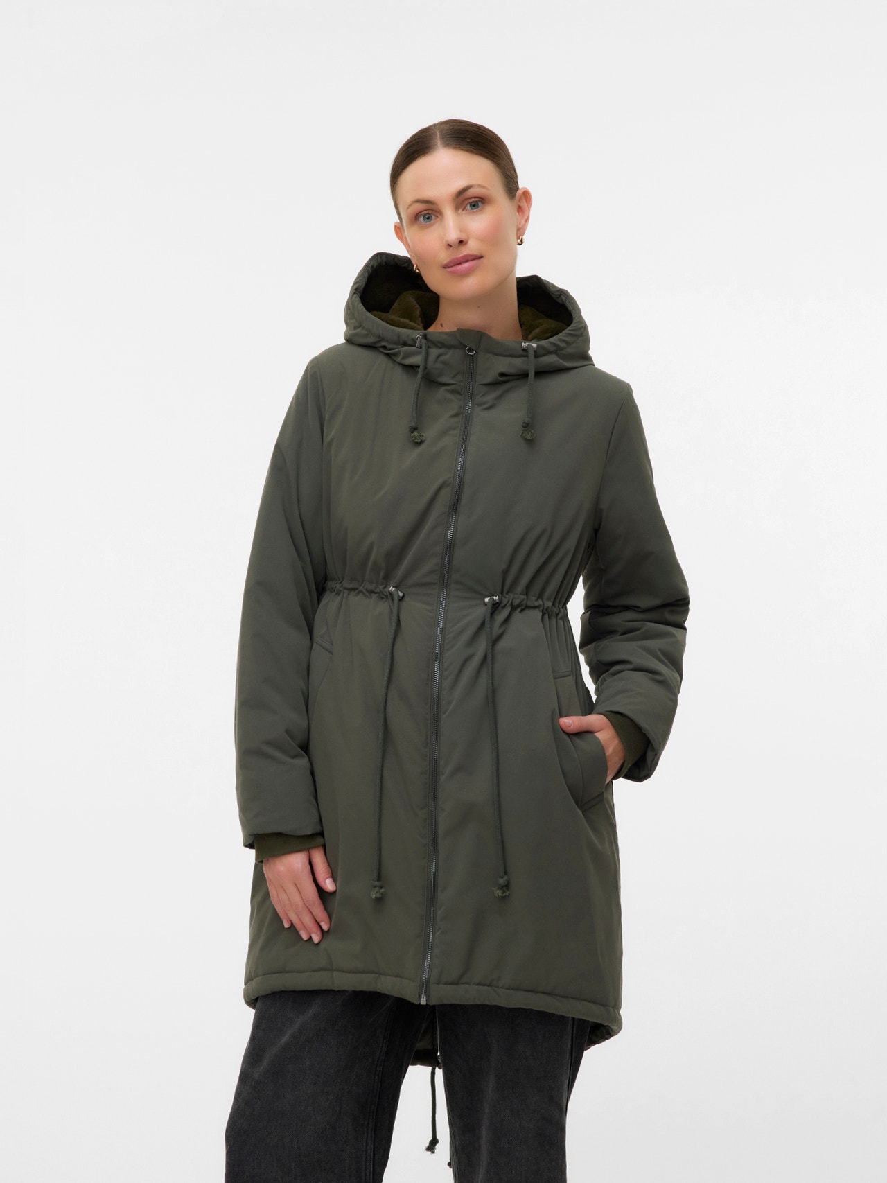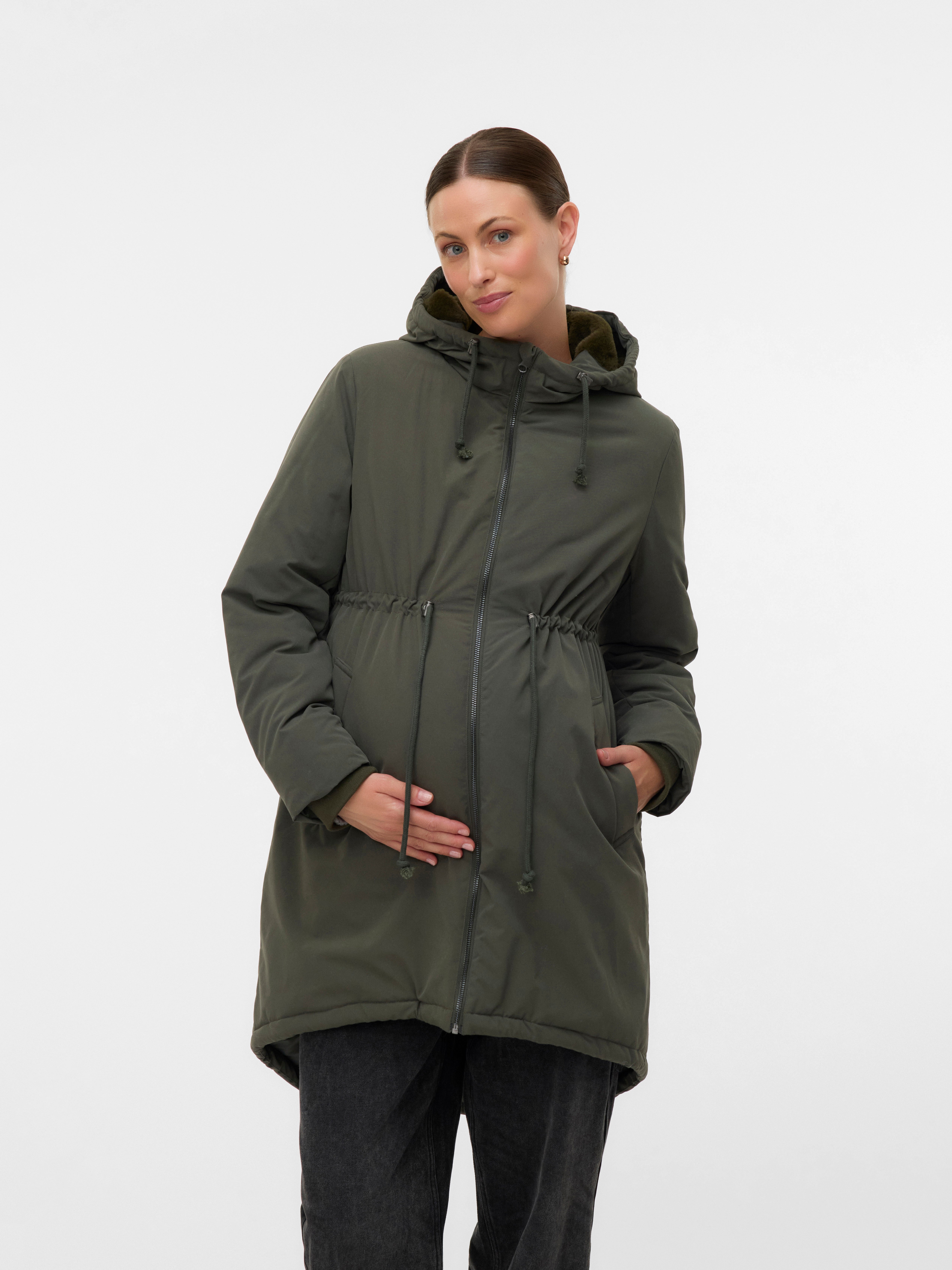 Valmistele vaatekaappisi tulevaan kauteen toiminnallisella ja muodikkaalla 3 in 1 -takilla, jota voit käyttää raskauden aikana, synnytyksen jälkeen lapsesi kantamiseen tai tavallisena takkina. Käytä raskauden aikana lisäpaneelin kanssa tai säätämällä istuvuutta; synnytyksen jälkeen voit käyttää kätevää kantotoimintoa vauvasi kantamiseen liittämällä kantopaneelin etupuolelle, jolloin saat tilaa kantoliinalle tai kantorepulle. Käyttämällä tavallisena takkina luot mukavan, selkeälinjaisen ilmeen.