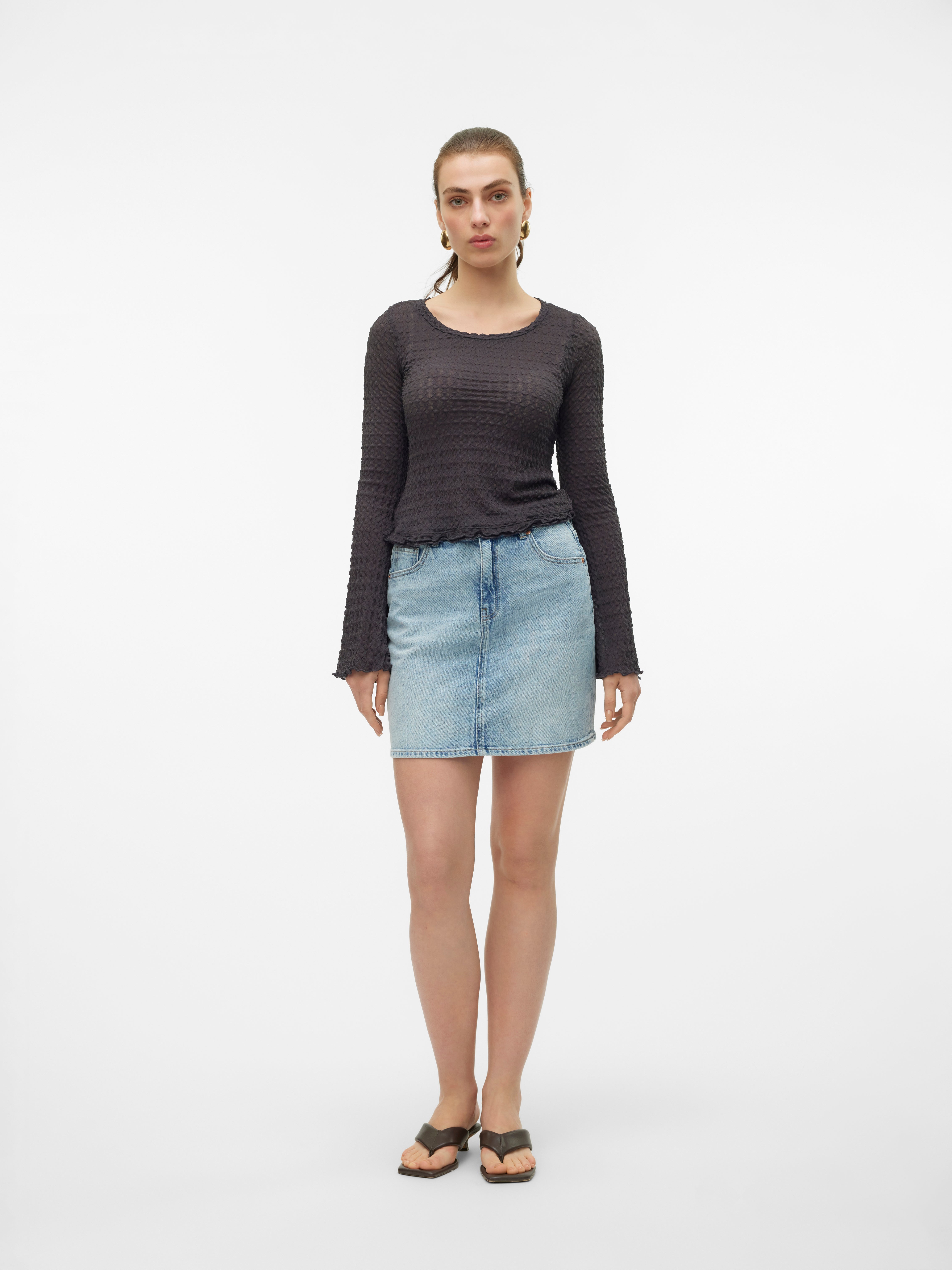 Le denim est toujours une bonne idée, même pour les jupes. Un vrai classique que vous pouvez styliser pour un usage quotidien comme bon vous semble. Pour un look fun, associez-la à une veste en jean et le tour est joué !.