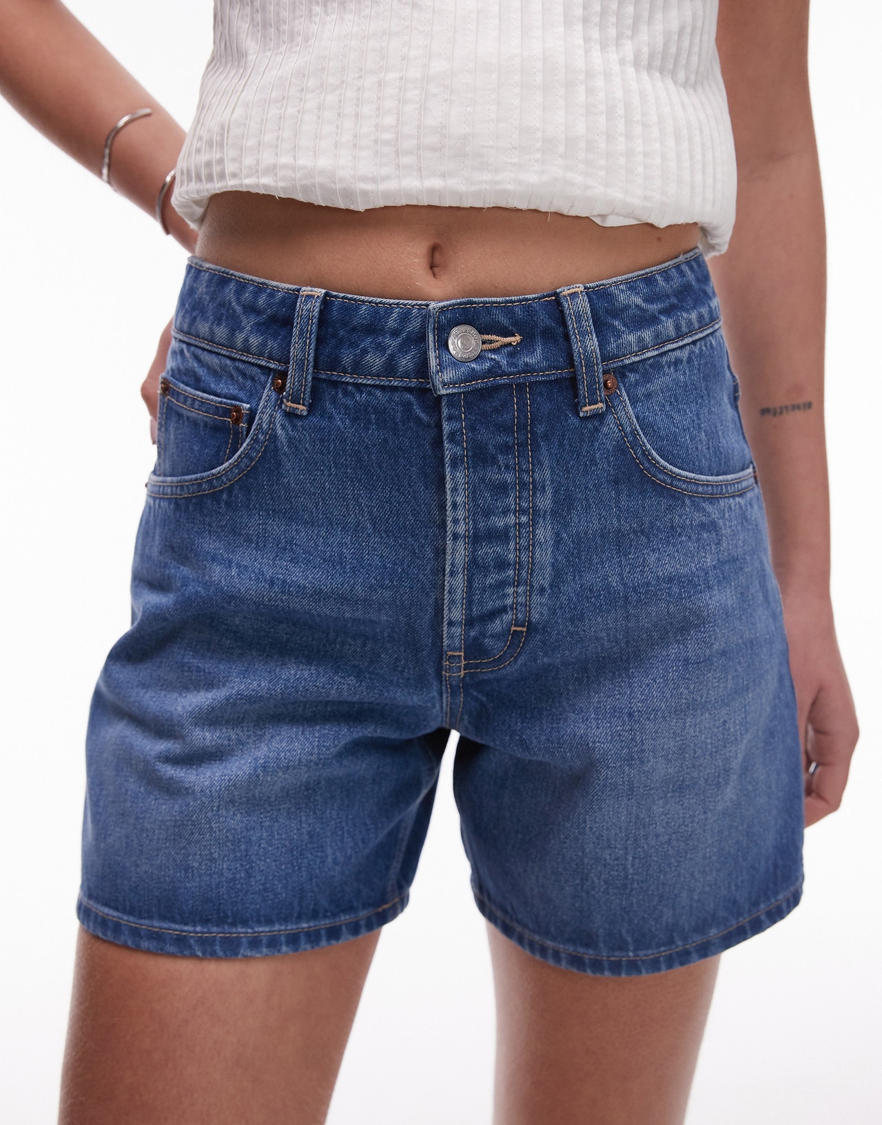 Topshop denim Editor shorts in mid blue - MBLUE