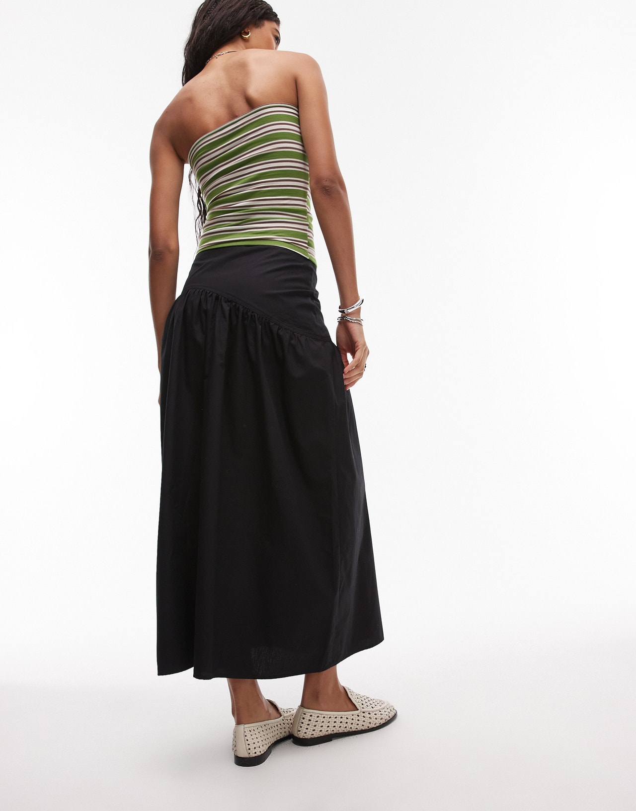 Topshop poplin full skirt with curved dropped waistband in black - BLACK