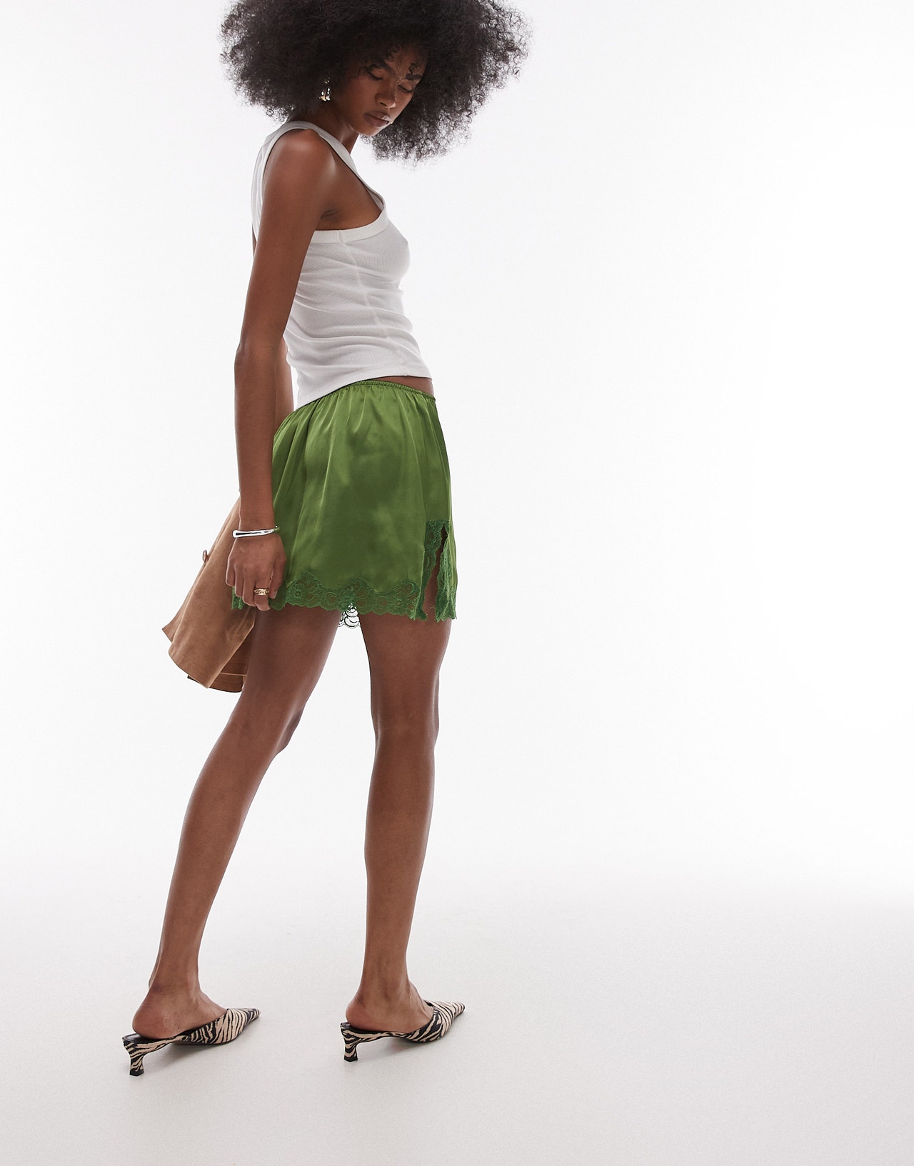 Topshop satin lace petticoat mini skirt in green - MGREEN