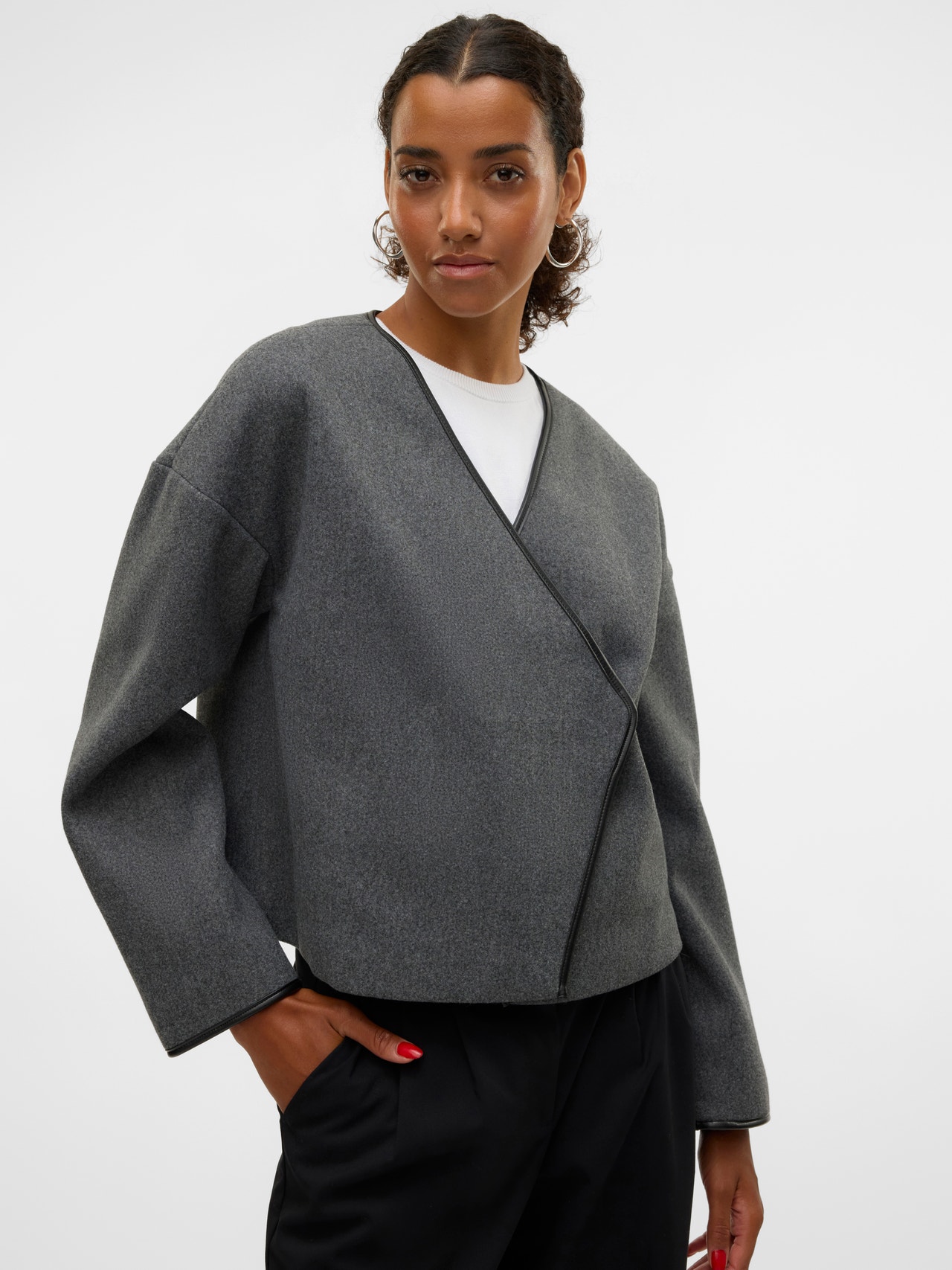 Ce blazer court est idéal pour ajouter de la dimension à votre look. Avec un bas à taille haute, il met vraiment en valeur votre taille. Portez un pantalon taille haute, un simple haut en dessous et des bottes.