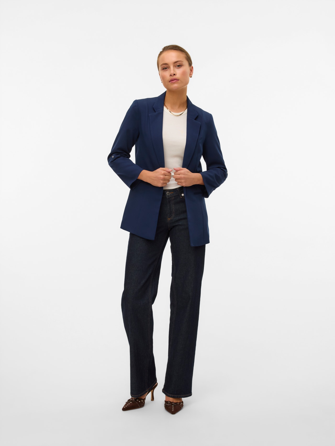 Vous avez un doute sur ce que vous devez porter ? Enfilez un blazer. Ce blazer est votre meilleur choix. Que vous le portiez par-dessus un simple t-shirt, le blazer apporte toujours un côté sophistiqué et une touche classe. Portez-le avec un jean large et des chaussures à talons pour un look de tous les jours.