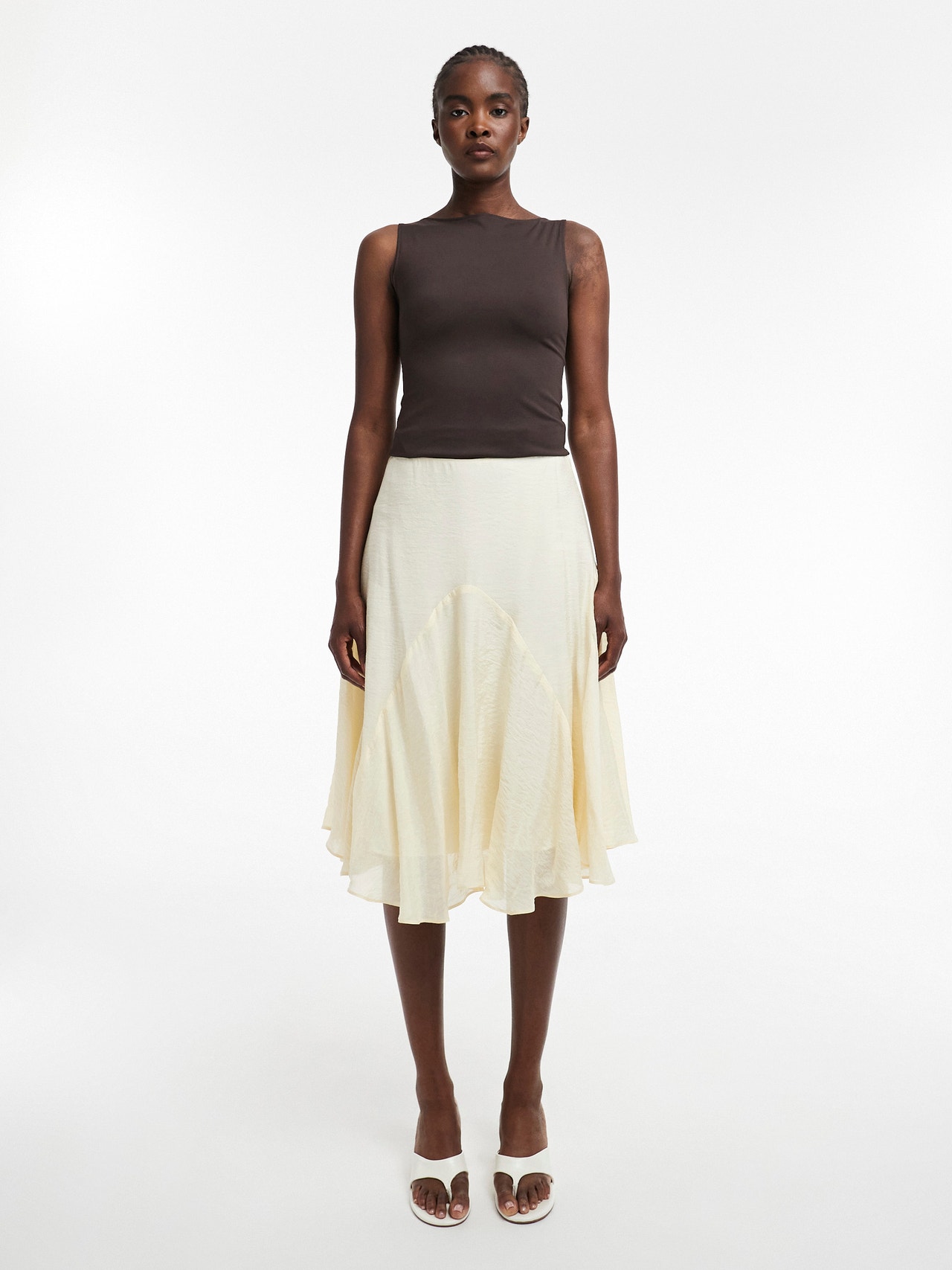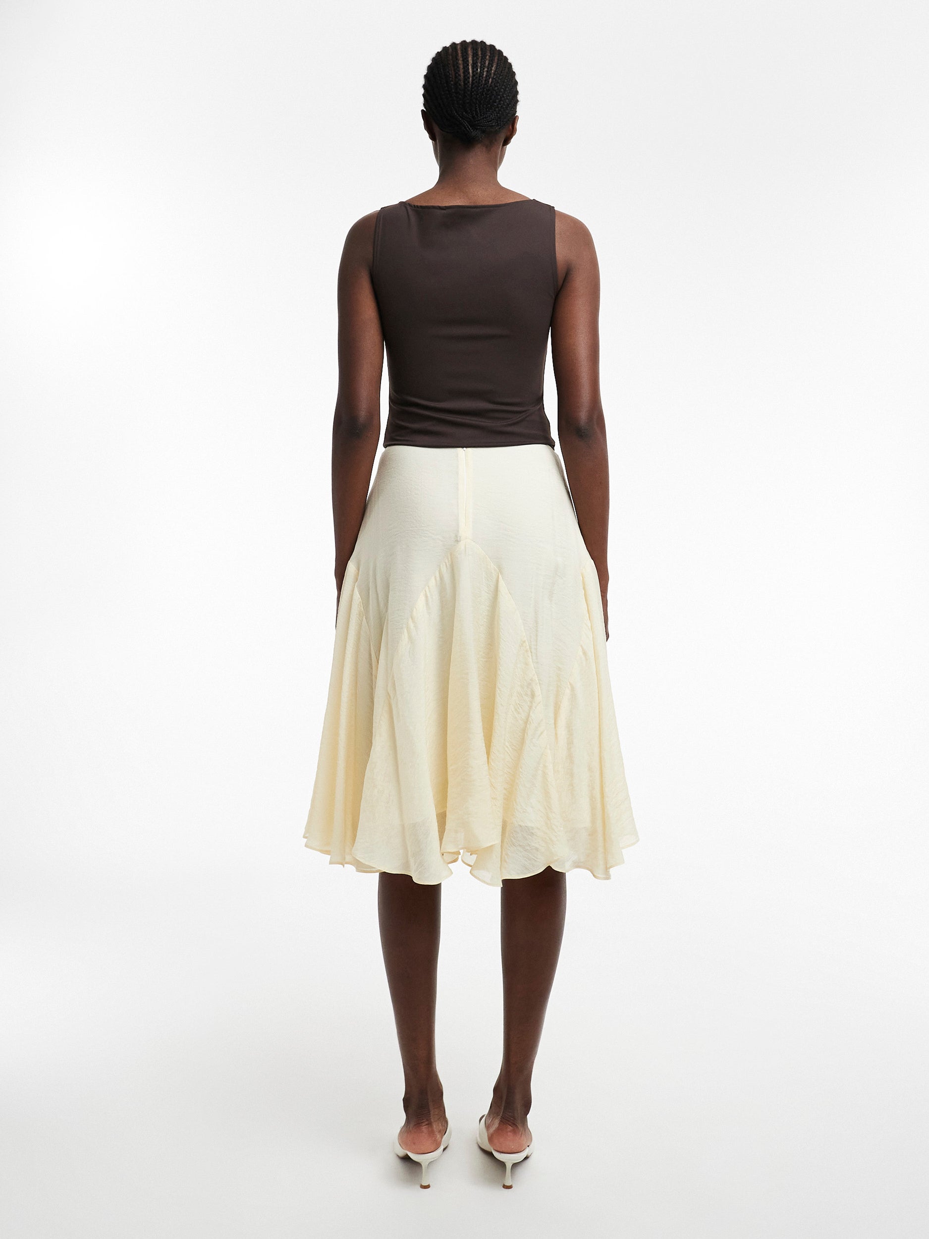 Si vous n’ajoutez qu’une seule pièce à votre garde-robe, que ce soit celle-ci ! La jupe midi est un incontournable classique qui se marie parfaitement avec un joli haut à nouer ou un crop top avant-gardiste. Sa longueur midi lui confère un style sans effort tout en vous permettant de mettre en valeur vos baskets ou ballerines préférées.