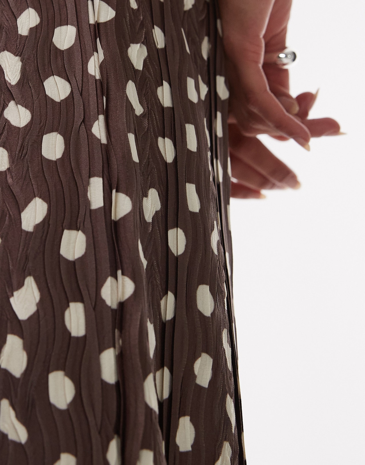 Topshop polka dot plisse wide leg trousers in brown - BROWN
