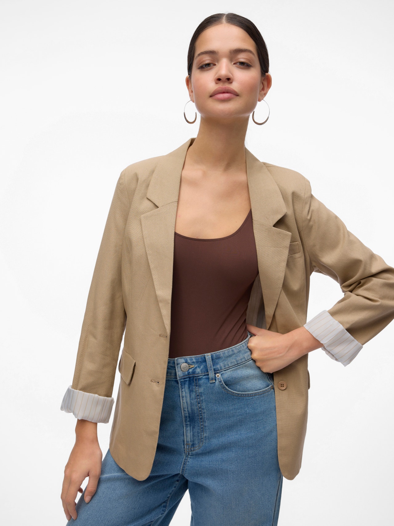 Non sai cosa mettere? Indossa un blazer. Questo blazer è il tuo capo di punta. Non importa se lo indossi sopra una semplice t-shirt - il blazer aggiunge sempre il suo tocco di classe e raffinatezza. Abbinalo a dei jeans ampi e scarpe col tacco per un look da tutti i giorni.