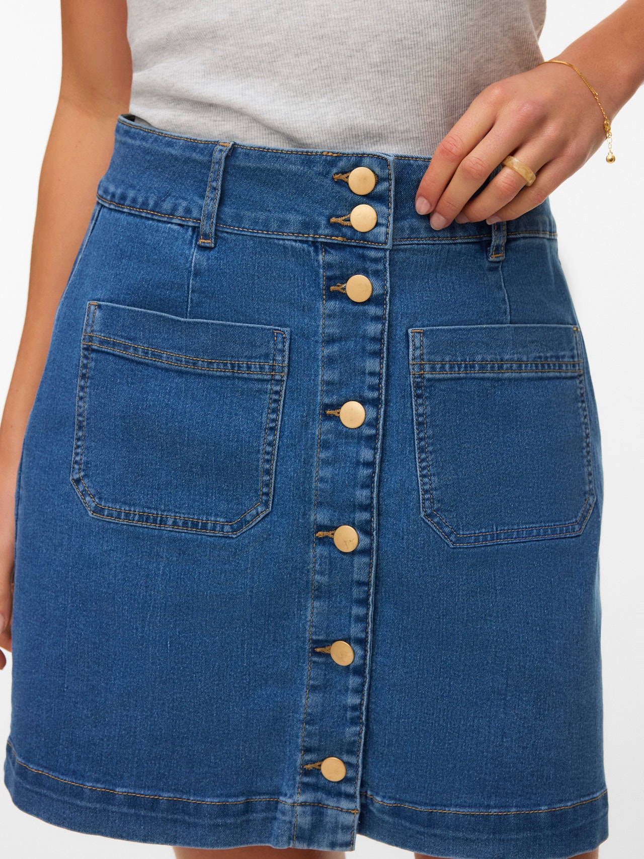 Il denim è sempre una buona idea, anche quando si tratta di gonne. Un vero classico che puoi indossare tutti i giorni e abbinare con quello che vuoi. Per un look divertente - abbinala una giacca in denim ed è fatta!.