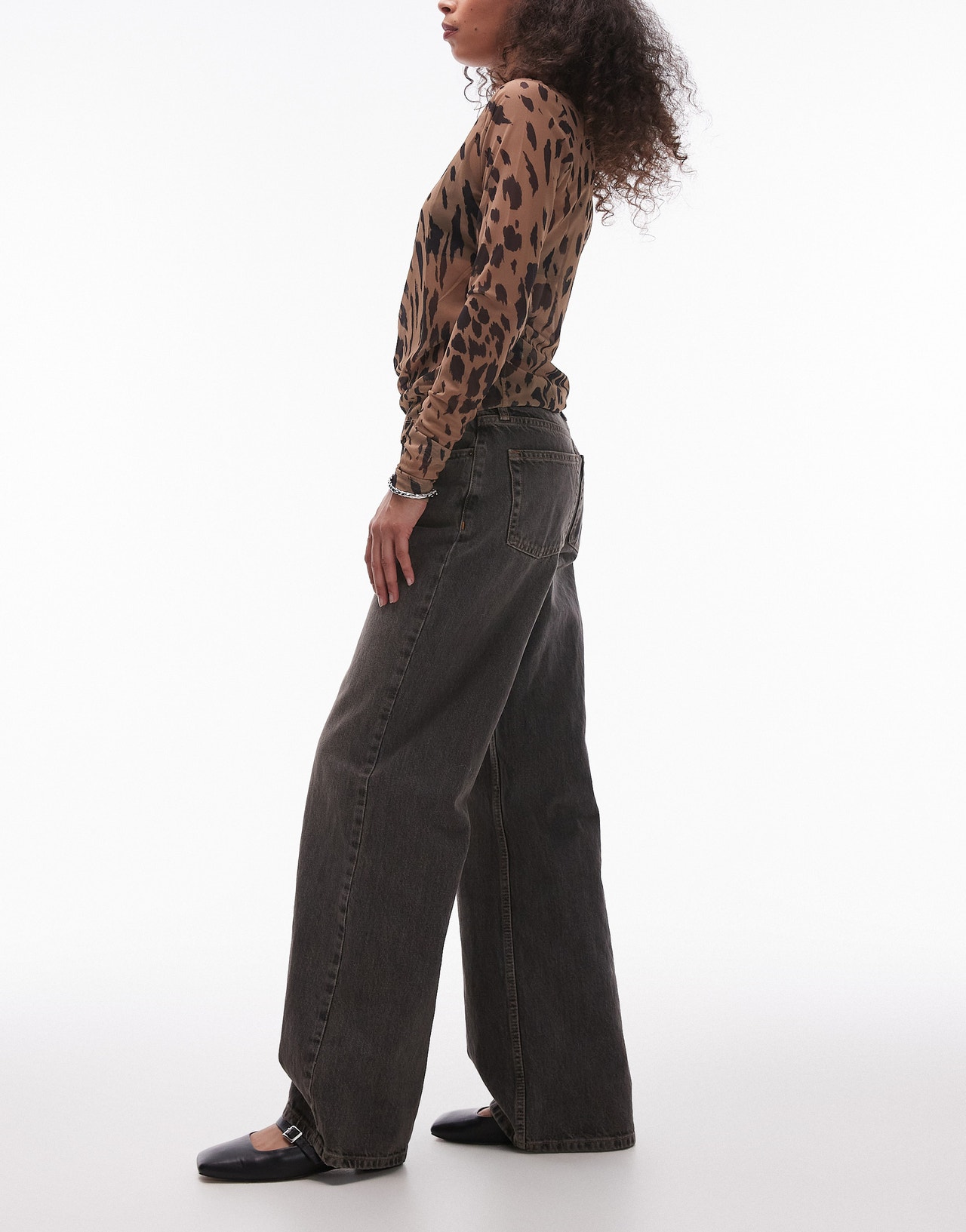 Topshop Ember low rise wide leg jeans in vintage grey - GREY