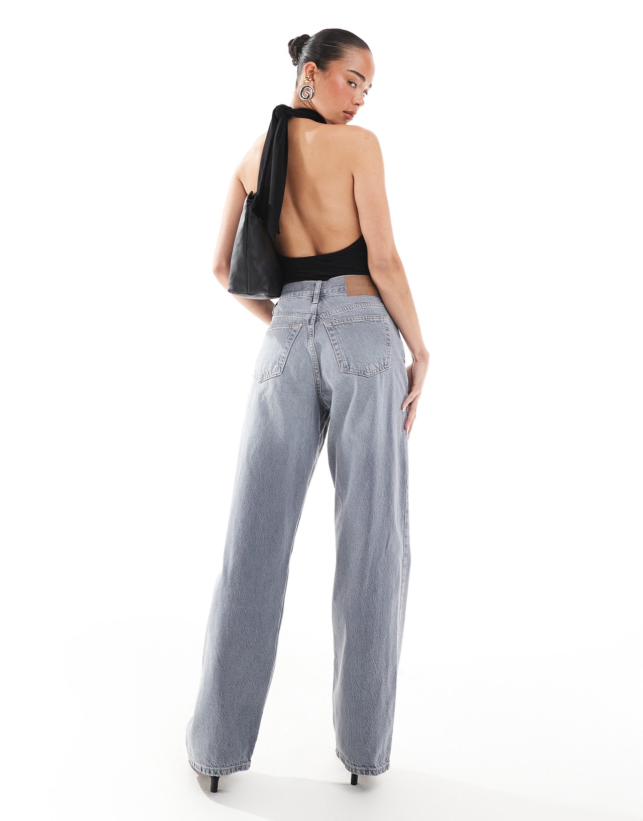 Topshop mid rise loose fit straight jeans in washed grey - GREY