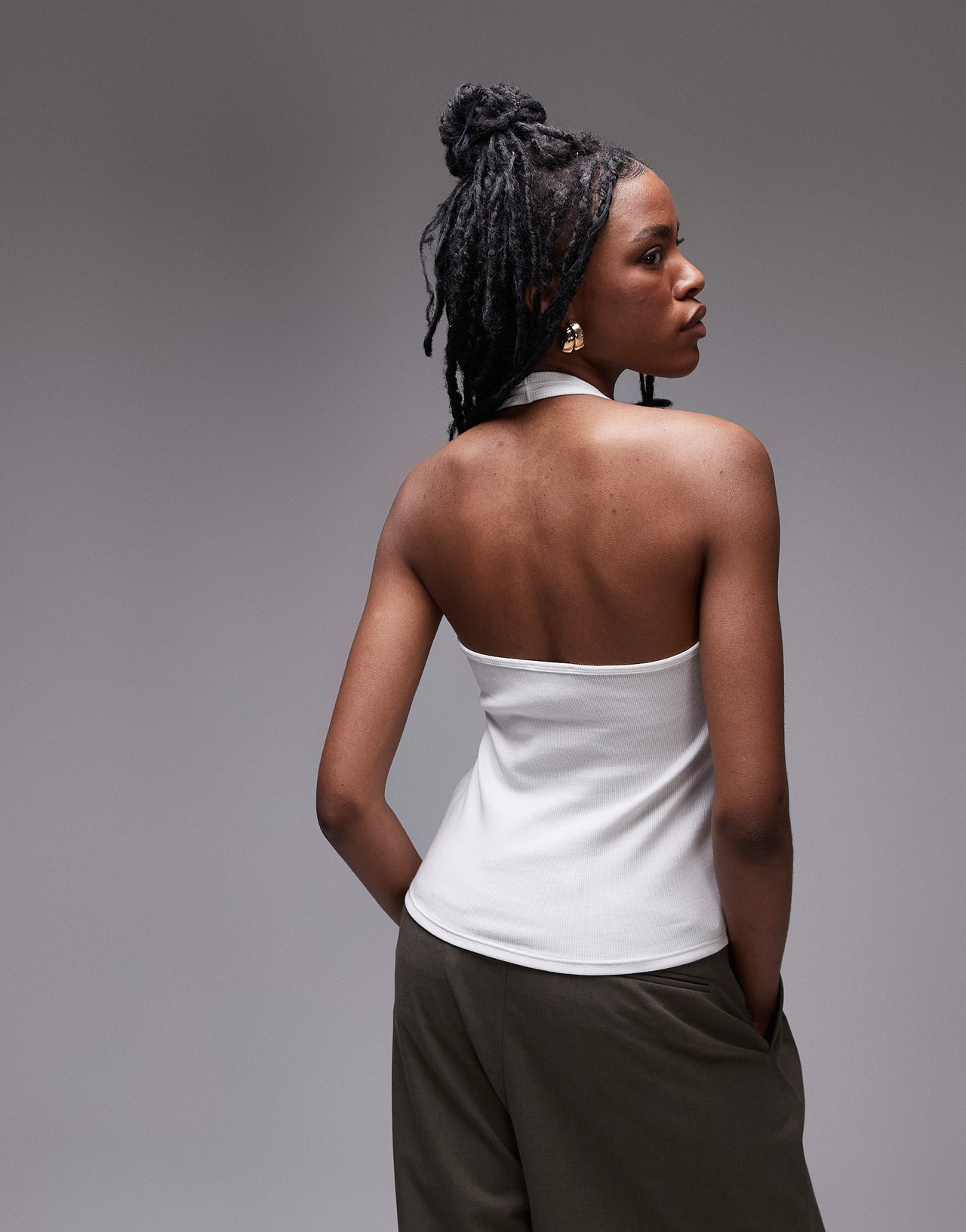 Topshop rib halter top in white - WHITE