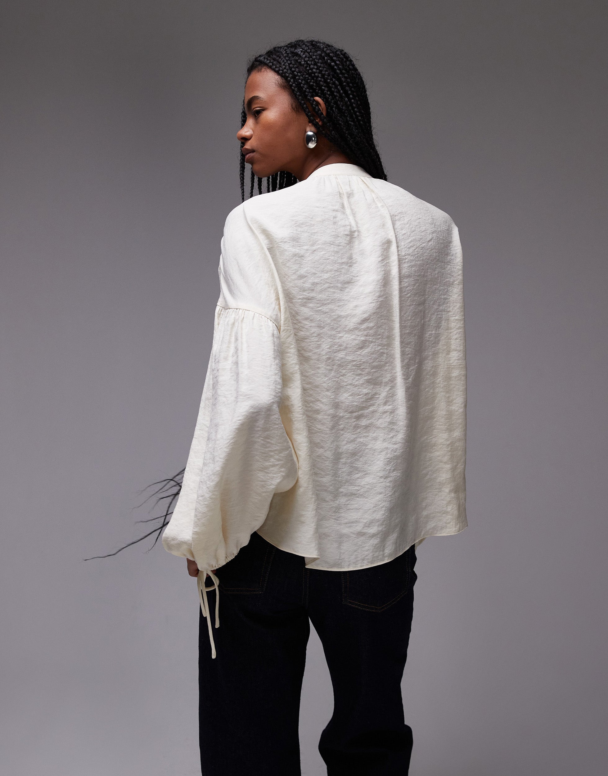 Topshop soft touch tie front top in buttermilk - CREAM