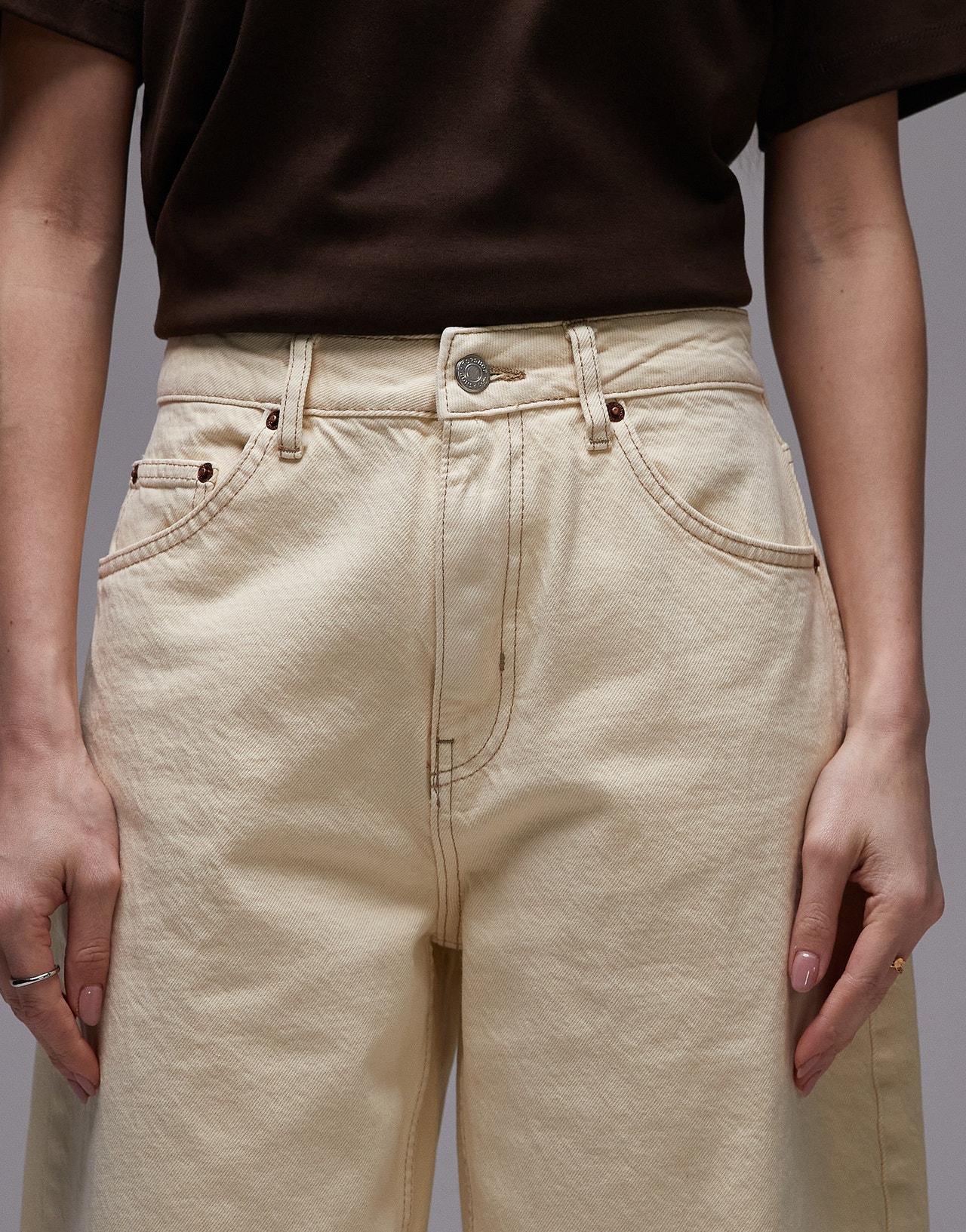 Topshop Barrel mid rise jean in buttermilk - YELLOW
