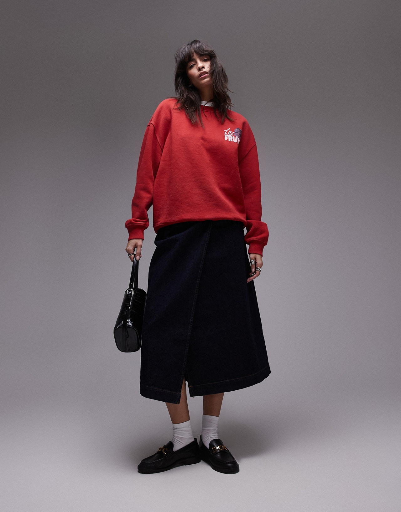 Topshop graphic les fruits oversized sweatshirt in red - RED