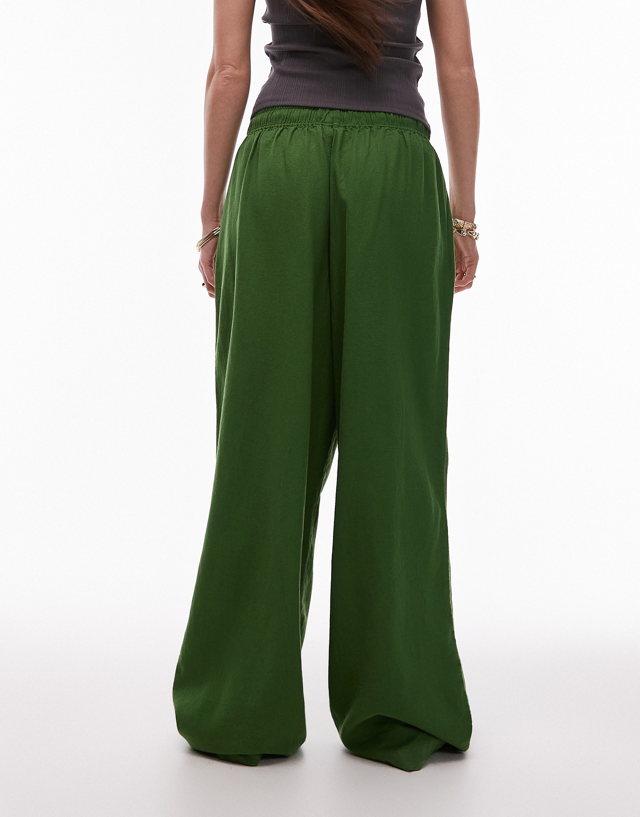 Topshop linen balloon trouser in olive green - MULTI
