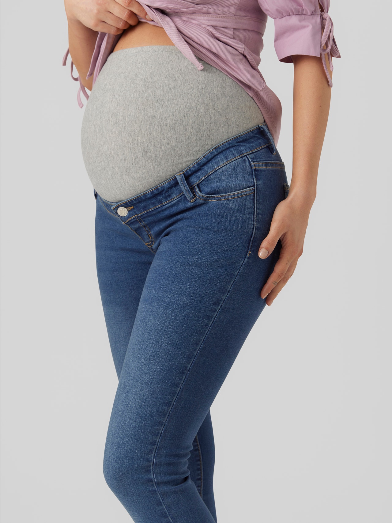 - Mid-wash maternity slim-fit jeans