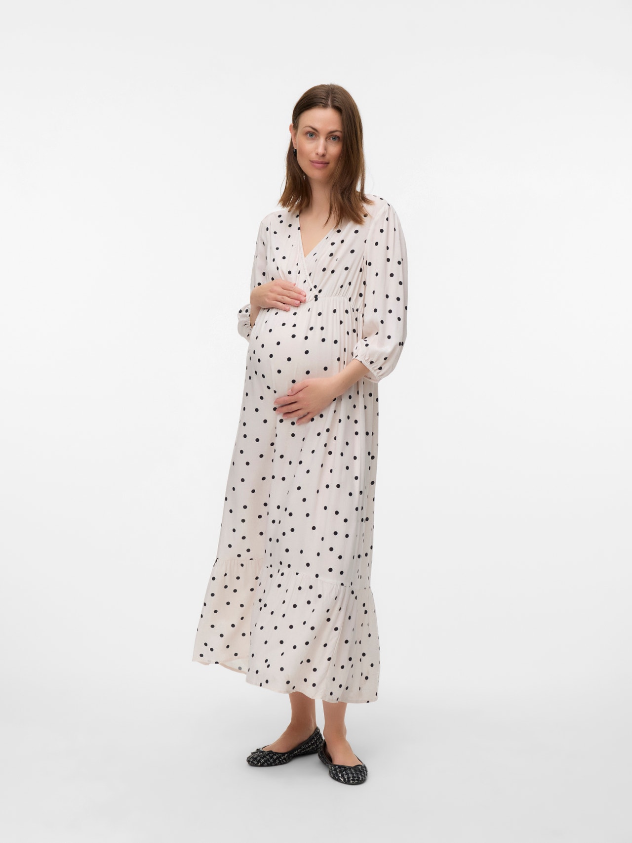 - Dettagli : Orlo stondato, Linea di taglio sopra il pancione, Pinces, Vita elasticizzata, Strato di allattamento sotto un effetto a incrocio