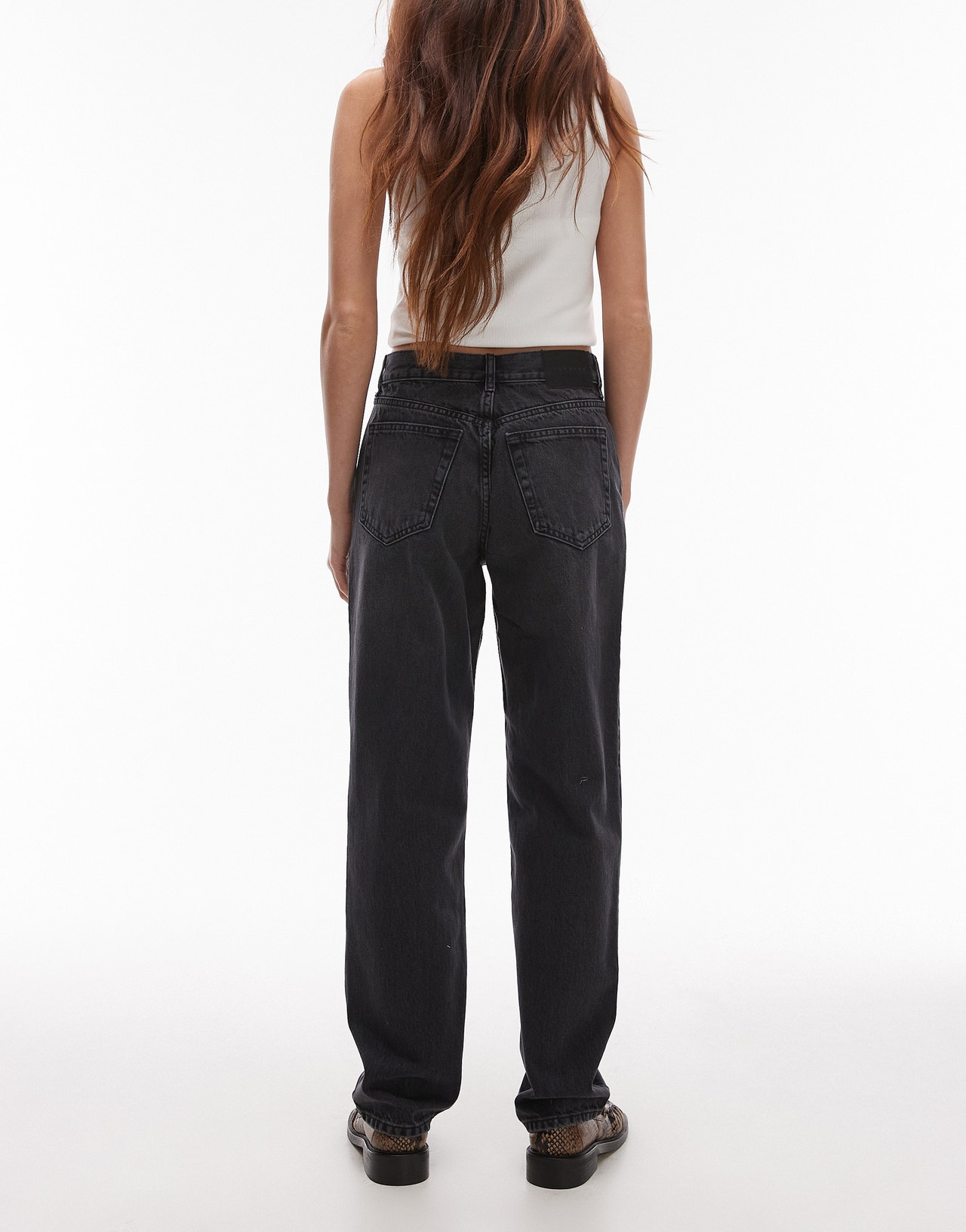 Topshop Runway mid rise straight jean in washed black - BLACK
