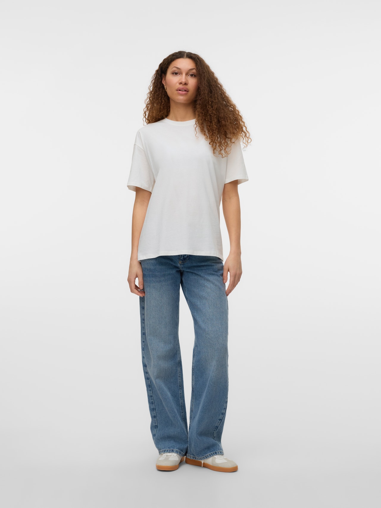 Hvis du er i tvil, bruk en T-skjorte! Du kan aldri trå feil med en T-skjorte - et perfekt valg for en kul og tidløs look. Bruk denne T-skjorten med fine kjærestejeans og legg til et par chunky joggesko for et urbant byutseende.