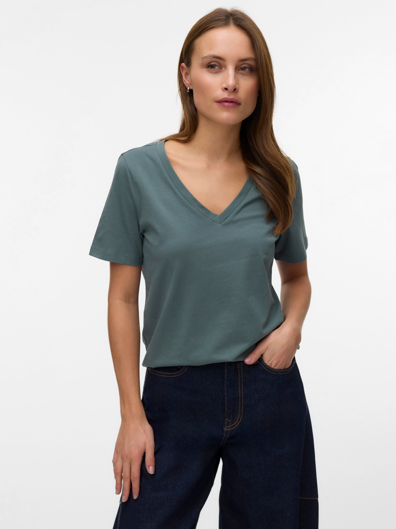 - Hals : V-hals