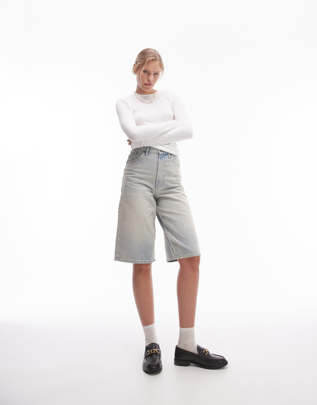 Topshop premium rib long sleeve top in ecru - CREAM