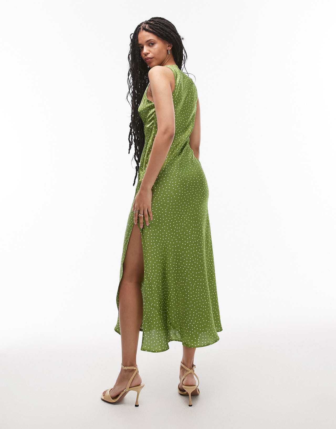 Topshop twist front midi dress in olive polka dot - MGREEN