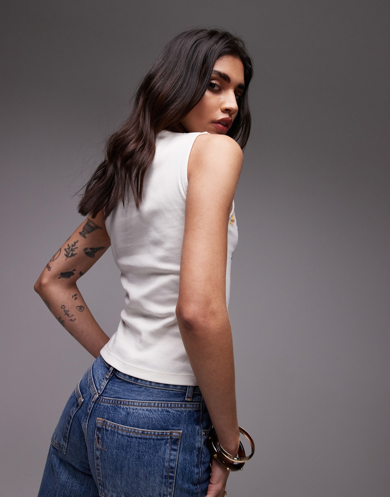 Topshop graphic Mexico Tulum tank in ecru - CREAM