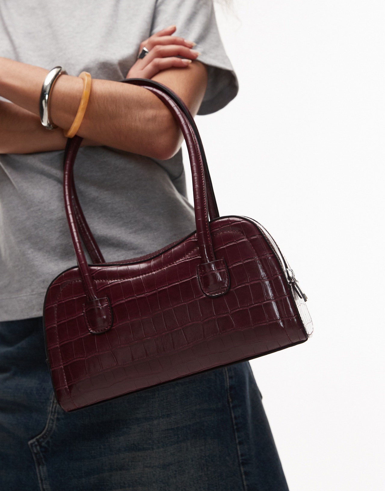 Topshop Simba structured shoulder bag in burgundy croc - BURGUNDY