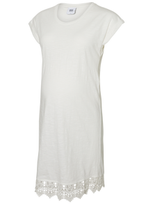 LADIES MATERNITY JERSEY TUNIC, NECK TAPE IN MAIN QUA, TURN UP AT CUFF, WITH BELT IN MAIN FABRIC, COTTON LACE AT HEM, FLAT LOCK AT HEM.
