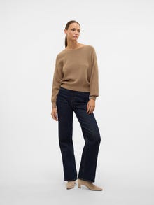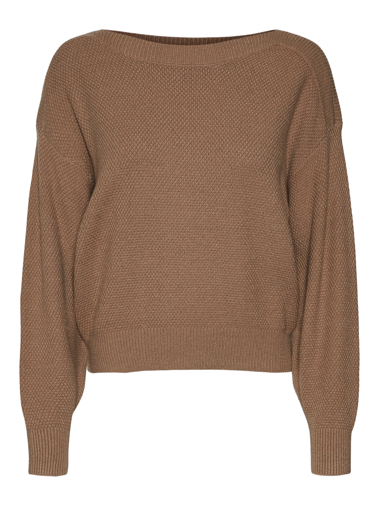 Knitted pullover with a boatneck neckline, dropped shoulders, and rib details by the cuffs. This comfy pullover is the perfect addition to any everyday look. Style it with some skinny jeans and add a chunky pair of boots.