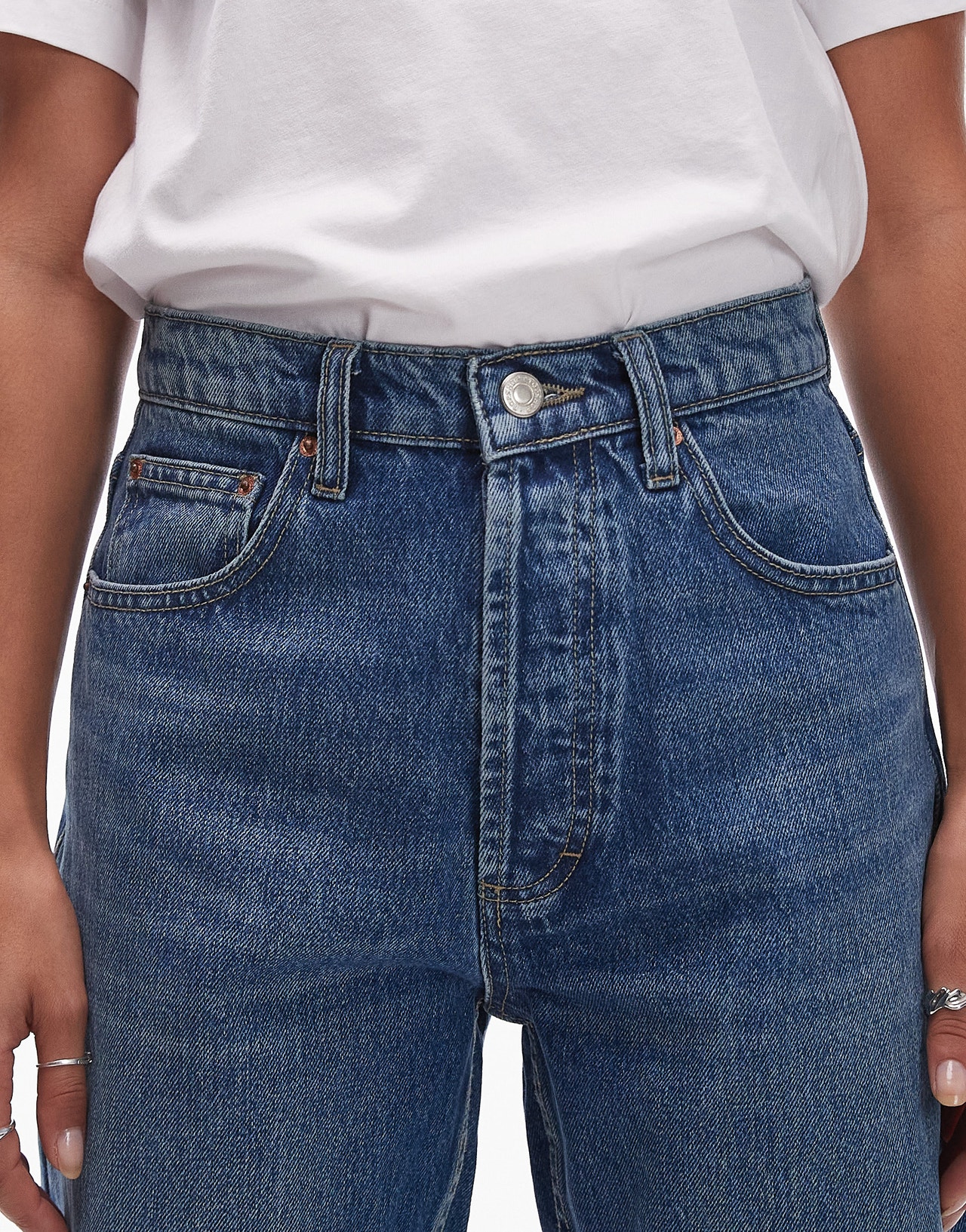 Topshop Kort high rise straight jean in mid blue - MBLUE