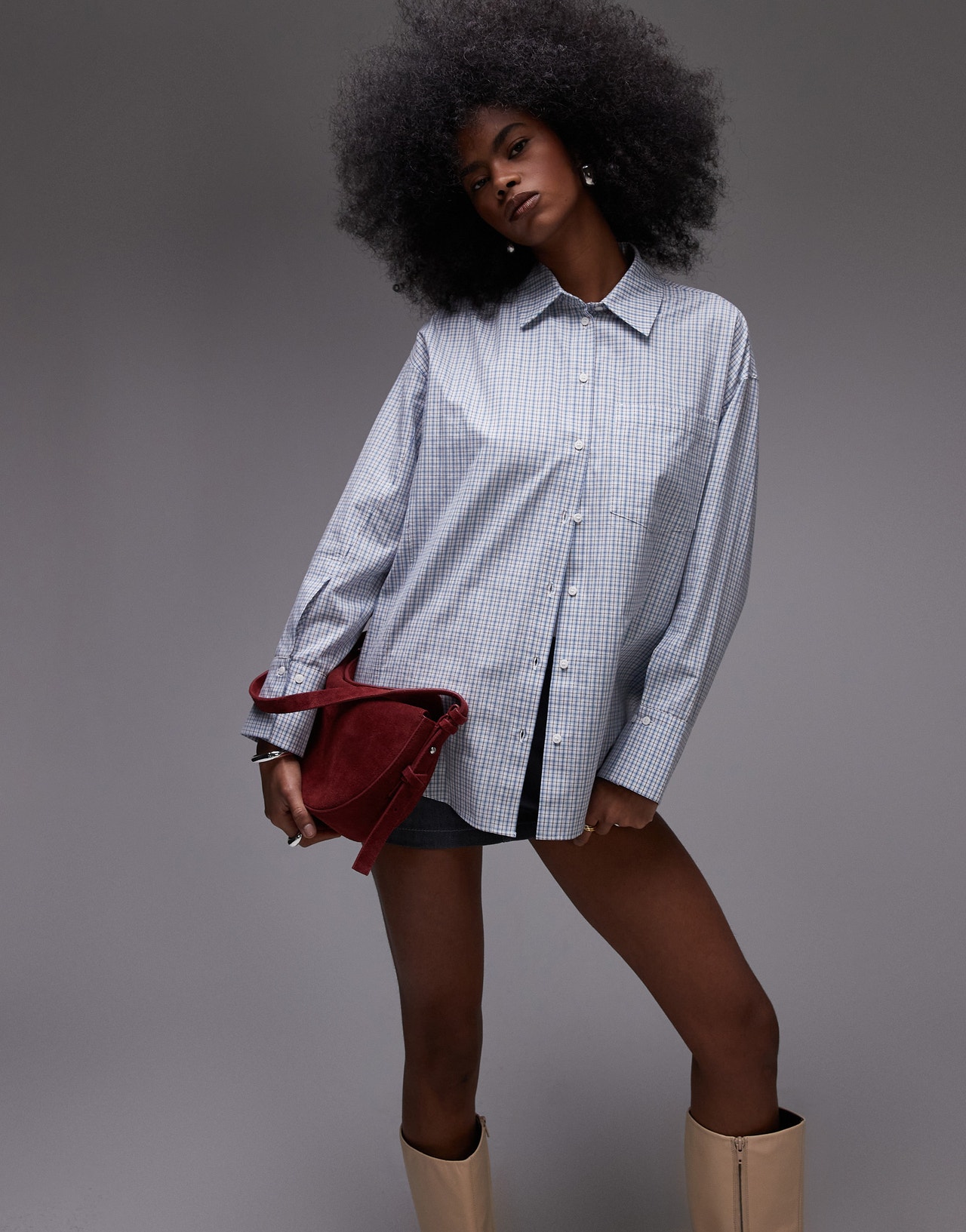 Topshop oversized shirt in blue micro check - LBLUE