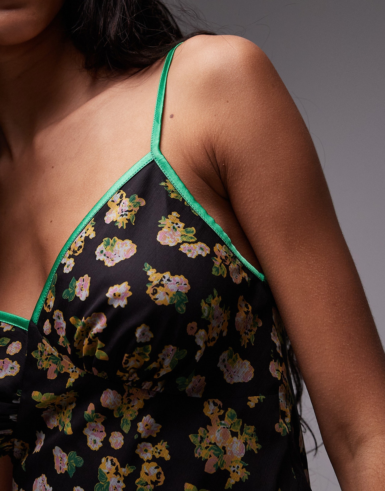 Topshop contrast binding cami in black floral print - BLACK