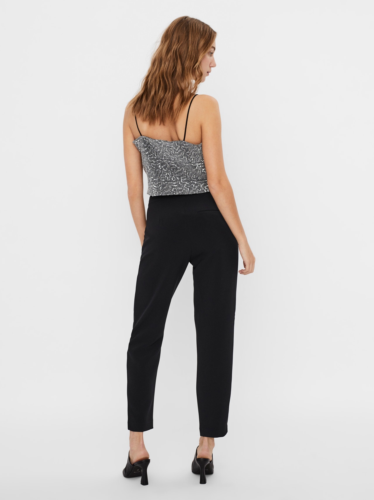 Top with sequins and spaghetti shoulder straps. The top is made from a soft and light material. Wear it with skinny jeans and high heeled boots for a feminine party look.