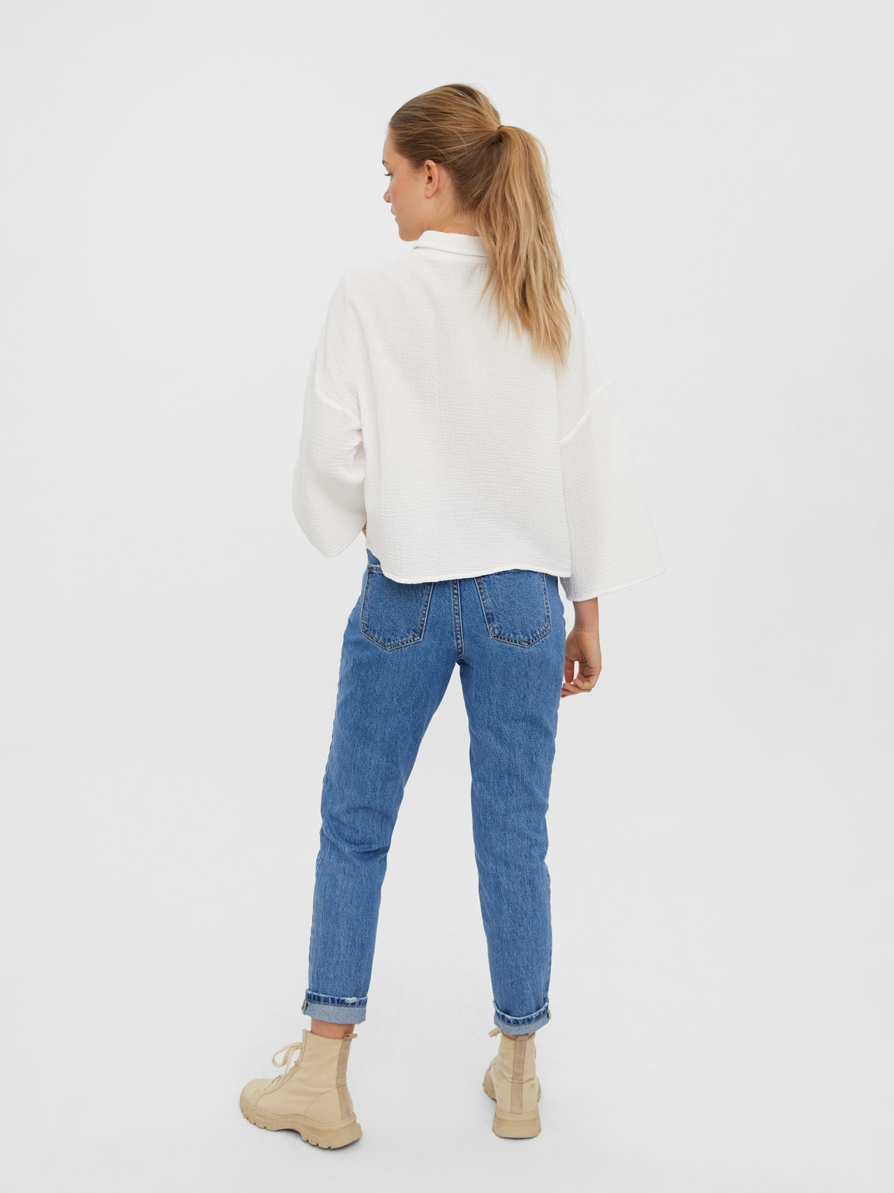Cropped top with a shirt collar, wide sleeves, and dropped shoulders. Style this gorgeous top with a pair of denim shorts and a pair of sneakers for a casual everyday look.