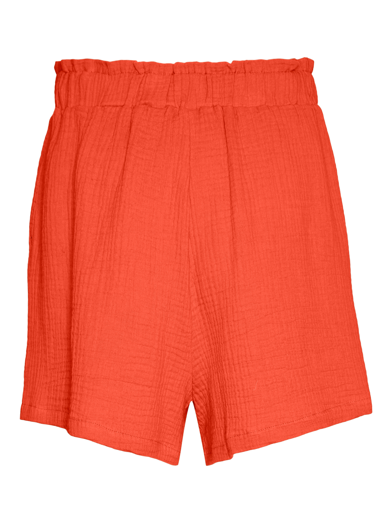 Shorts with slit pockets, an elastic waist, and a high waist. Style the shorts with a t-shirt and sneakers, for a simple look when it is hot and sunny outside.