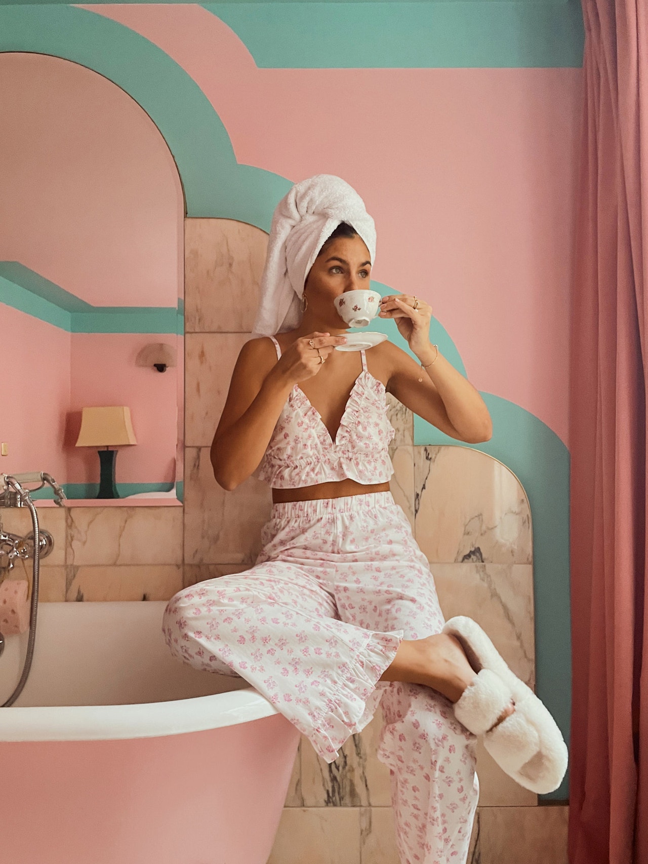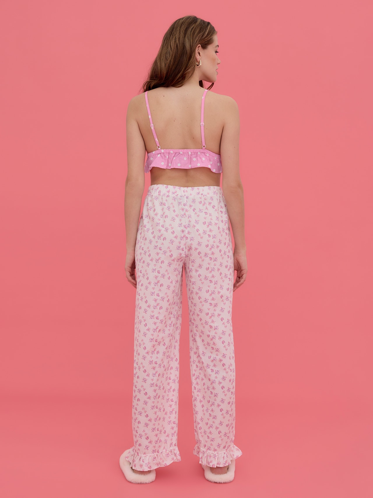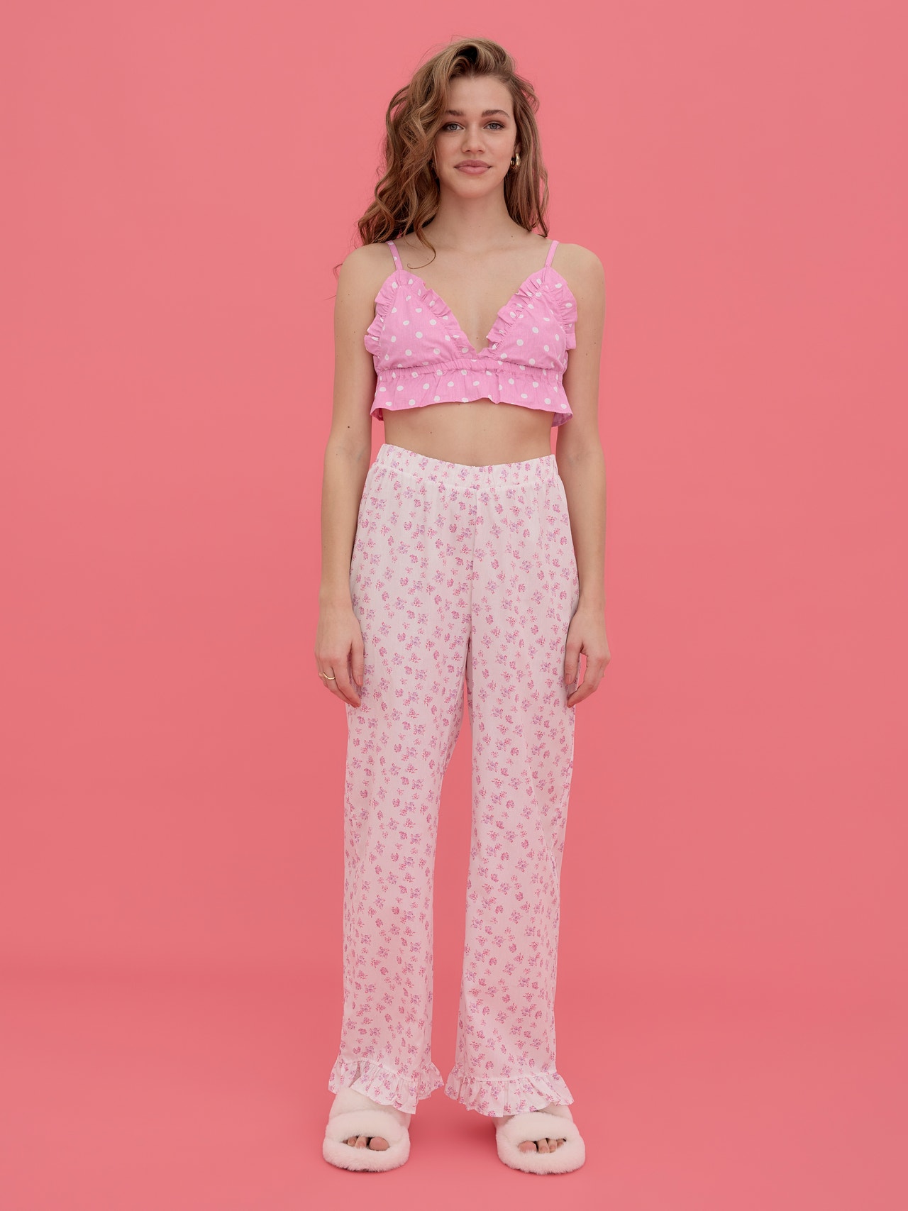 Nightwear shorts with an elastic waist and frill detail at the leg opening. Style these cute trousers with the matching top and add an oversized blazer and a pair of cool sneakers for a stylish look.