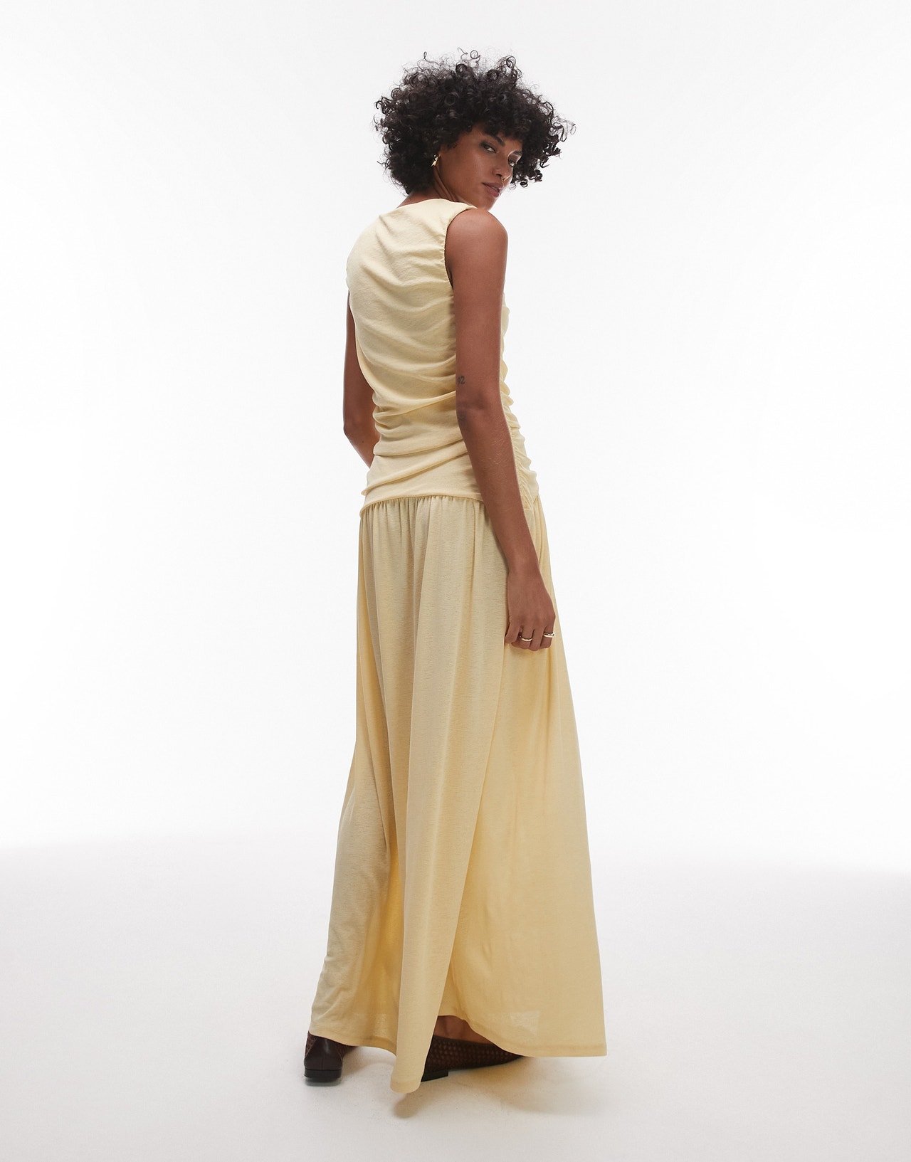 Topshop drop waist ruched maxi dress in buttermilk - YELLOW